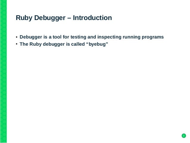 30+ Using Ruby Debugger US. This library provides debugging functionality to ruby. Def say(word) require 'debug' puts word end.